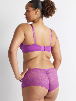 Cute, comfy and made to be worn on repeat. The Be Free Lace Short Knicker in Sweet Pea features a flattering short silhouette with full coverage and an easy, comfortable fit. Delicate lace detailing and a soft pastel tone bring a fresh, feminine feel to your everyday essentials.