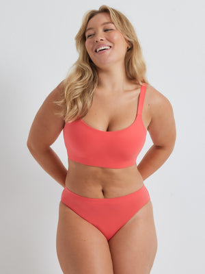 Free yourself with our Alive Collection. Designed for you to live at ease, this is your new staple brazilian knicker in Sunset Coral.