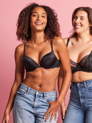 The Kayser Bombshell Super Boost Bra in Black creates maximum cleavage with a double-boosted padded bra that adds 2 sizes. This push-up bra features a plunging neckline, adjustable straps and lacewings.