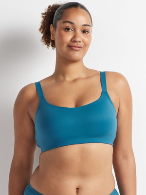 Slip into easy comfort with the Alive Wire Free Bra in Blue Coral. This wire-free style features a flattering scoop neckline and soft moulded cups for gentle shaping and support. Made from brushed fabric with gel elastic wings, it delivers a smooth, comfortable fit all day. Your new go-to for effortless, everyday wear.