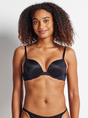 The Brazilian Smooth Push-up Bra in Black is the latest (and greatest) addition to the Brazilian Collection. An everyday alternative to your favourite Brazilian Push-up Bra, featuring smooth, low-sheen micro cups for a no-show finish under clothing. Made with a plunging neckline, concealed elastic wings and padded hook & eye for added comfort, this perfect push-up bra creates a natural cleavage with a soft, lightly-boosted cup.