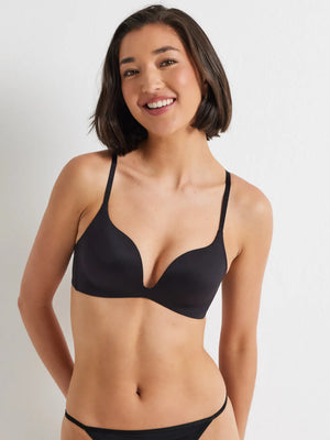 Experience effortless comfort and support with the Wirefree Push Up Bra in Black. Designed for a smooth and seamless silhouette, this bra delivers the lift and shape of a push up bra while offering comfort and all-day wearability without underwire. The sweetheart neckline and deep plunge front make ideal for low-cut outfits.