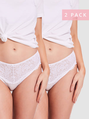 The Daily Essentials Stretch Cotton & Lace Hi-Cut knickers (219) are the ultimate everyday brief. Featuring a sophisticated lace front and stretch cotton body, these hi-cut white briefs will support and hug all day long. Like a classic bikini cut, the hi-cut brief sits a little higher on the waist and the leg line, offering freedom of movement and a flattering silhouette. The stretch cotton & lace underwear is all about classic style and comfort - perfect for being out and about or lounging around.