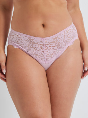 The Daily Essentials Stretch Cotton & Lace Hi-Cut (219) knickers in Fragrant Lilac are the ultimate everyday brief. Featuring a sophisticated lace front and stretch cotton body, these hi-cut briefs will support and hug all day long. Like a classic bikini cut, the hi-cut brief sits a little higher on the waist and the leg line, offering freedom of movement and a flattering silhouette. Perfect for being out and about or lounging around, this hi-cut is designed to last and provide optimum comfort.
