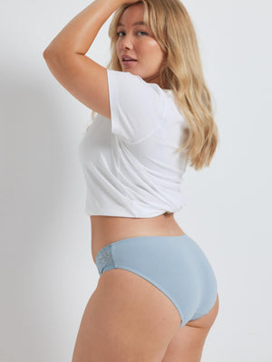 The Daily Essentials Stretch Cotton & Lace Hi-Cut (219) knickers in Fragrant Lilac and Winter Sky are the ultimate everyday brief. Featuring a sophisticated lace front and stretch cotton body, these hi-cut briefs will support and hug all day long. Like a classic bikini cut, the hi-cut brief sits a little higher on the waist and the leg line, offering freedom of movement and a flattering silhouette. Perfect for being out and about or lounging around, this hi-cut is designed to last and provide optimum comfort.