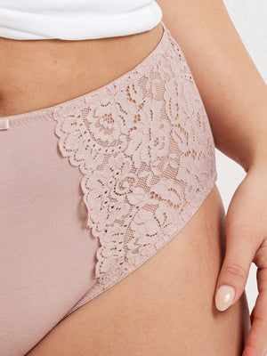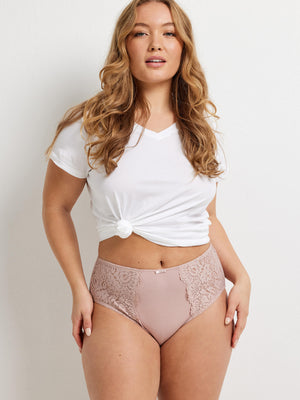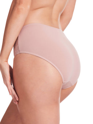 The Daily Essentials Stretch Cotton & Lace Full Brief in Blush is a great option for everyday wear. These full-coverage panties have lace side panels and a breathable cotton body for all-day comfort. With a wonderful bow accent and bold lace, this knicker is both stylish and functional.