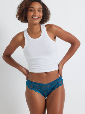 The Brazilian Bikini you know and love, now in a 2 pack! The Kayser Brazilian Bikini Underwear in Cerulean Teal is a cheeky Brazilian-cut brief with stunning all-over lace and a scalloped lace edge. This cheeky underwear is smooth and comfortable, ensuring no visible panty lines.