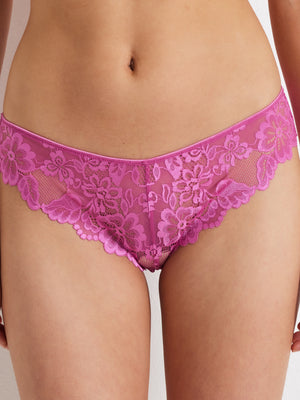 The Kayser Brazilian Bikini Underwear in Super Pink is a cheeky Brazilian-cut brief with stunning all-over lace and a scalloped lace edge. This cheeky underwear is smooth and comfortable, ensuring no visible panty lines.