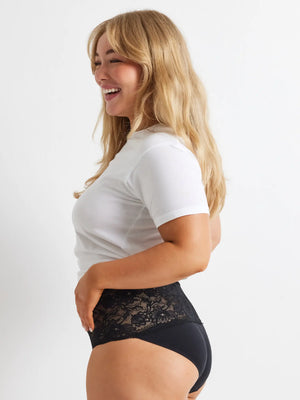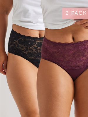 The Daily Essentials Cotton & Lace Full Brief you know and love, now in a 2 pack! The Kayser Daily Essentials Cotton & Lace Full Briefs in Black and Cherry Lacquer are the perfect control knickers. Featuring a wide lace band in our fresh lightweight floral lace as well as a cotton body. These full-coverage briefs will provide the ultimate support and comfort for everyday wear. With a scalloped edge and stunning stretch lace paneling, these knickers are fashionable and functional.
