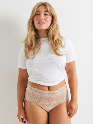 The Daily Essentials Cotton & Floral Lace Full Brief (465N) you know and love, now in a 2 pack! The Kayser Daily Essentials Cotton & Lace Full Briefs in Cherry Lacquer & Honey are the perfect control knickers. Featuring a wide lace band in our fresh lightweight floral lace as well as a cotton body. These full-coverage briefs will provide the ultimate support and comfort for everyday wear. With a scalloped edge and stunning stretch lace paneling, these knickers are fashionable and functional.