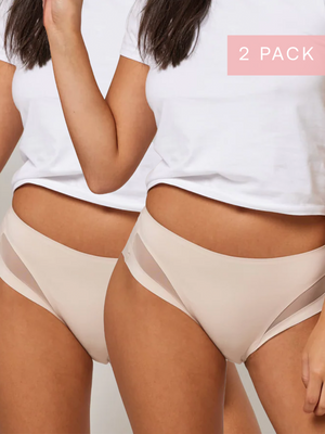 The Kayser 2 Pack Sleek & Smooth High Cut in Blush are going to be your new go-to everyday underwear. Our sleek smoothing micro with elegant mesh panels, holds firmly but does not constrict and the laminated elastic waist and laser-cut edges create a no-show finish, so they are invisible under clothing.