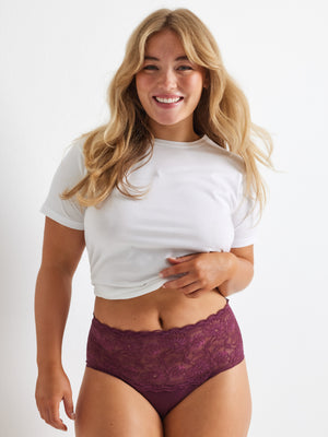 The Kayser Daily Essentials Cotton & Lace Full Briefs in Cherry Lacquer are the perfect control knickers. Featuring a wide lace band in our fresh lightweight floral lace as well as a cotton body. These full-coverage briefs will provide the ultimate support and comfort for everyday wear. With a scalloped edge and stunning stretch lace paneling, these knickers are fashionable and functional.