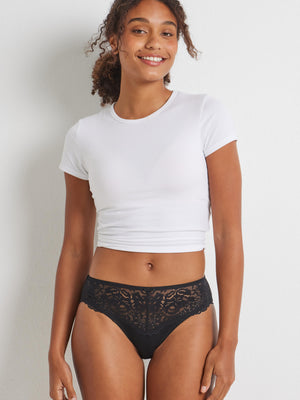 The Daily Essentials Stretch Cotton & Lace (219) Hi Cut knickers in Black are the ultimate everyday brief. Featuring a lace front and stretch cotton body, these hi-cut briefs will support and hug all day long. Like a classic bikini cut, the hi-cut brief sits a little higher on the waist and higher on the leg line, offering freedom of movement and a flattering silhouette. Perfect for being out and about or lounging around, this hi-cut is designed to provide optimum comfort.