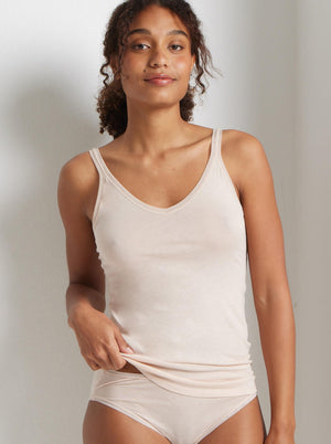 The Kayser Pure Cotton Cami in Honey Beige is the perfect all-year-round layering piece. Made from 100% superfine cotton, this beautifully soft singlet is comfortable and fits well under your clothing. Featuring a v-neck and mesh trim details, making this the perfect everyday beige camisole.