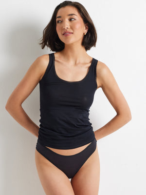 The Kayser Pure Cotton Wide Strap Cami in Black is the perfect all-year-round layering piece. Made from 100% superfine cotton this beautifully soft singlet is comfortable and fits well under your clothing. This black cami is a wardrobe classic featuring a scoop neck front, razor back and wide shoulder straps for extra support and comfort.