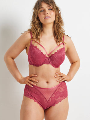 Be bold and beautiful. The Kayser After Dark Frenchy Balconette Bra in Spice is a mix of gorgeous scalloped floral lace, mesh and flirty trend strap details. The dusty rose shade and lace design adds a touch of romance to your lingerie collection.