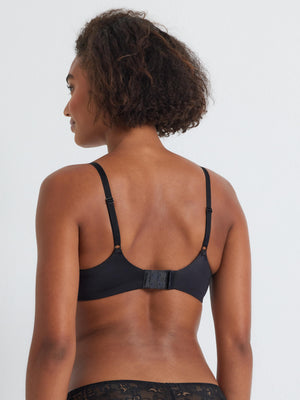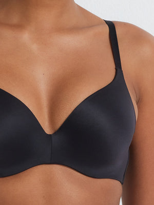 Meet our Total Comfort Smooth Comfort T-Shirt Bra in Black. This stunningly crafted bra creates a natural bust shape with its modern neckline and is fully encased, with no visible seams for a flattering no-show finish under all clothing. Featuring a soft, comfortable ballet back with concealed wings and a padded hook and eye for extra comfort, you will keep reaching for this bra time and time again.