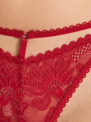 Make a statement in our After Dark Last Dance G-String in Burgundy. Designed with all-over lace and mesh, scalloped edges and cheeky strap details, the deep red shade and floral design adds a touch of luxury to your lingerie collection.