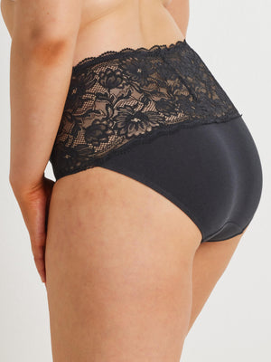 The Kayser Daily Essentials Cotton & Lace Full Briefs in Black are the perfect control knickers. Featuring a wide lace band in our fresh lightweight floral lace as well as a cotton body. These full-coverage briefs will provide the ultimate support and comfort for everyday wear. With a scalloped edge and stunning stretch lace paneling, these knickers are fashionable and functional.