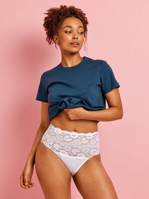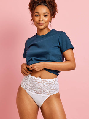 The Kayser Daily Essentials Cotton & Lace Full Briefs in White are the perfect control knickers. Featuring a wide lace band in our classic heritage corded floral lace as well as a cotton body. These full-coverage briefs will provide the ultimate support and comfort for everyday wear. With a scalloped edge and stunning lace panelling, these knickers are fashionable and functional.