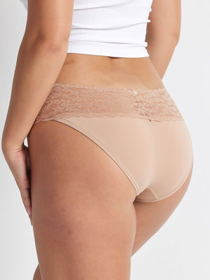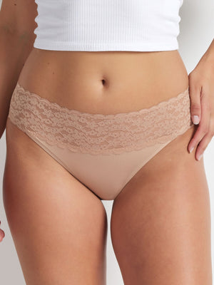 Soft, understated and made to go with everything. Designed for all-day wear, the Glowlights Bikini in Hazelnut blends ultra-soft 4-way stretch microfibre with a smoothing lace waistband. It moves with you, hugs in all the right places, and stays in place without digging or rolling. Feather-light, breathable, and made for your top-drawer rotation.