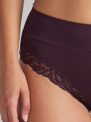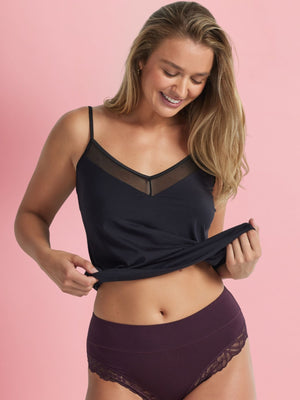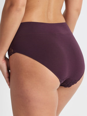 Your favourite Comfort Band Lace Trim Mid Rise is now in a 2 pack. Designed for comfort you can count on, the Comfort Band Lace Trim Mid Rise Brief in Plum combines a smooth, supportive fit with a buttery-soft knit feel. The wide comfort waistband sits securely at the waist without digging in, while lace trim details add a refined finish. A modern essential for everyday wear.