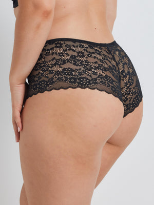 Pretty it up this season with our cheeky Be Free Lace Short in Black. The best of both worlds, super comfy and super cute. This full-coverage shortie offers a blend of fashion and comfort, while the intricate lace detailing adds a touch of sophistication. The luxe black shade and allover lace design adds a touch of glamour to your lingerie collection.