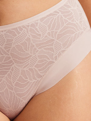 The Sleek & Smooth Lace Mid Rise in Blush is the perfect blend of style and everyday comfort. Made from smoothing lace and soft microfibre, these mid-rise briefs provide a flattering fit that gently hugs your curves. The laser-cut edges ensure a no-show finish under clothing,