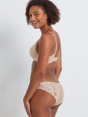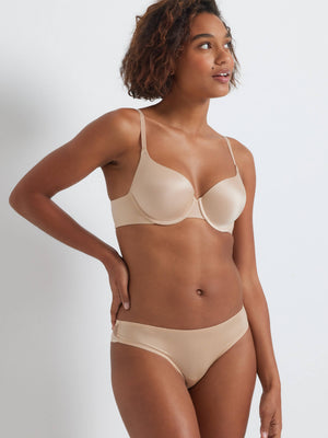 The Smooth T-Shirt Bra in Rugby Tan is the new day-to-day addition to the Total Comfort collection. Featuring smooth, low-sheen micro cups for a no-show finish under clothing, concealed elastic wings, a supportive ballet back and a padded hook and eye for added comfort. This perfect t-shirt bra creates a natural shape with a soft, lightly padded moulded cup with a 2-way stretch.
