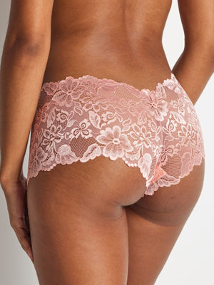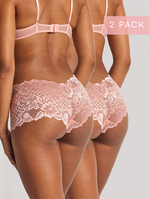 Your favourite Brazilian Shortie is now in a 2 pack. The Kayser Brazilian Short underwear in Candlelight Peach is a good coverage brief with stunning all-over lace and a scalloped lace edge. These beautiful Brazilian undies are smooth and comfortable ensuring no visible panty lines.