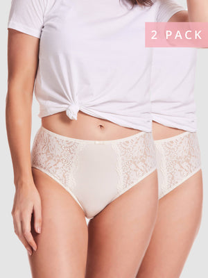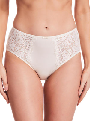 The Daily Essentials Stretch Cotton & Lace Full Brief knickers are a great option for everyday wear. These full-coverage ivory panties have lace side panels and a breathable cotton body for all-day comfort. With a wonderful bow accent and bold lace, making this underwear stylish and functional. Ideal for those who require a little extra assistance.
