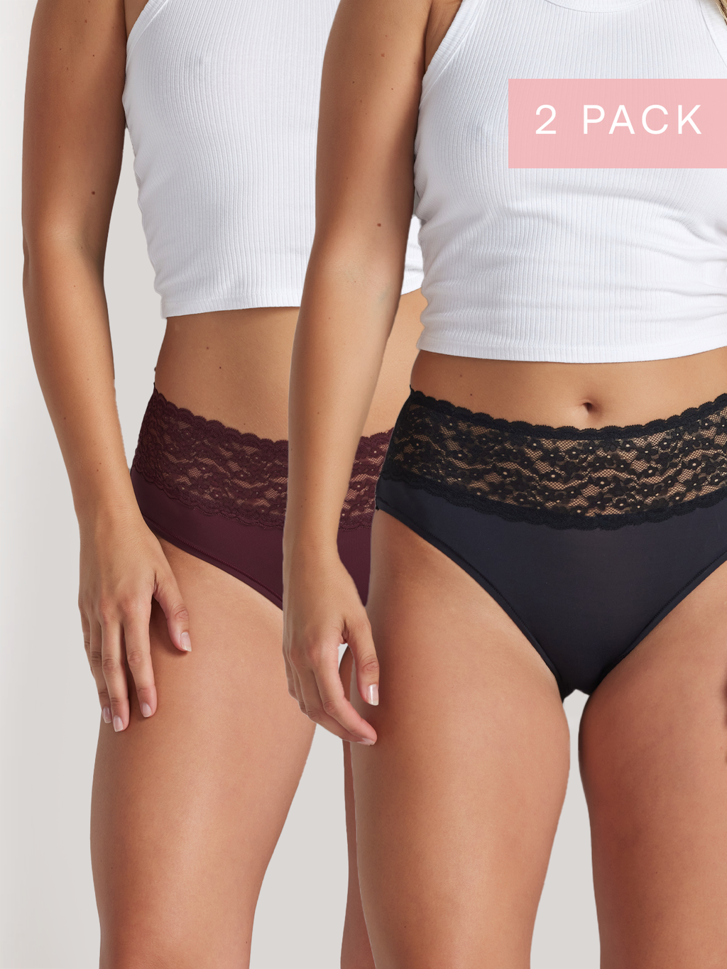 Your favourite Glowlights Hi Rise is now in a 2 pack. The Glowlights Hi-Rise brief smooths and supports in all the right places, thanks to buttery 4-way stretch microfibre and a wide lace waistband that won’t roll or dig. Designed to hug your curves and stay put, it’s your go-to for all-day comfort with a little extra coverage.