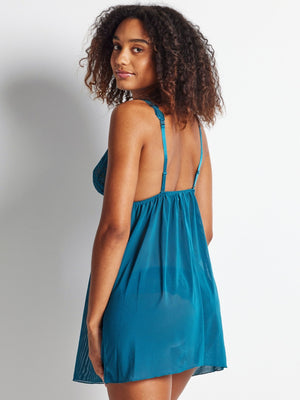 Pair the sheer babydoll chemise with the Brazilian Bikini or Short in Blue Coral for a matching lingerie moment.