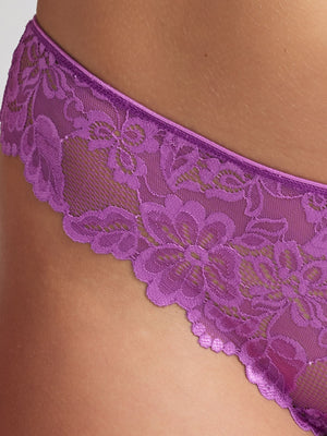 The Kayser Brazilian Bikini Underwear in Sweet Pea is a cheeky Brazilian-cut brief with stunning all-over lace and a scalloped lace edge. This cheeky underwear is smooth and comfortable, ensuring no visible panty lines.