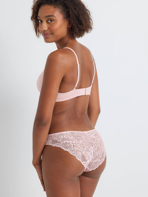 Combining our two best-selling collections, the Brazilian Bombshell Bikini is the cheeky Bombshell knicker you know and love mixed with our signature Brazilian floral lace. Add a splash of fun to your intimate drawer with this lace-back cheeky bikini. Featuring a smooth, low-sheen micro front with soft concealed elastics around the leg & waistline, and a seam-free lace back for a reduced VPL.