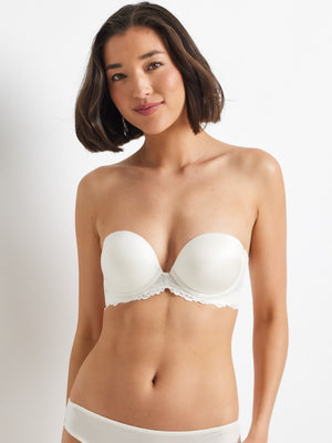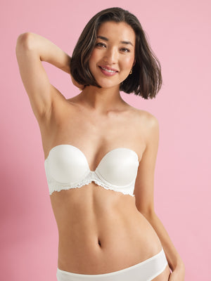 Create maximum cleavage with this double-boosted push-up strapless bra that adds 2 cup sizes! This super boost strapless bra features smooth low sheen microfibre cups for a no-show finish under clothing, a plunging neckline, removable straps, and smooth, bagged-out lace and mesh wings for a bra that will make you feel fabulous!