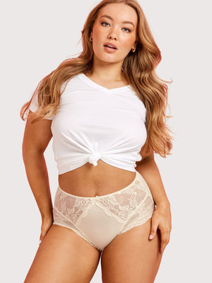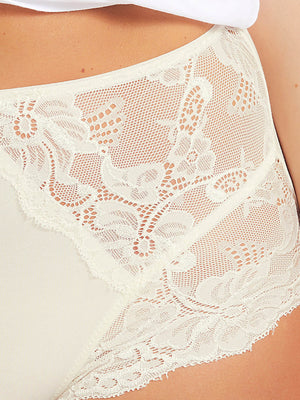The Kayser Classic Lace Hi-Cut Brief in Ivory is a pretty and perfect comfort knicker – you’ll want one for every day of the week! With lace panelling and a soft stretch cotton body, this nude hi-cut brief creates a flattering shape and provides a comfortable fit for all-day wear. Designed for both comfort and style, these high-cut briefs are a timeless addition to your wardrobe.