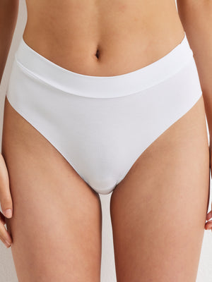 Introducing the Kayser Eco Collection, your new comfy and sustainable everyday underwear. The Kayser Clean Cut Modal High Rise G-string in White is a must-have if you look for comfort in an everyday knicker.