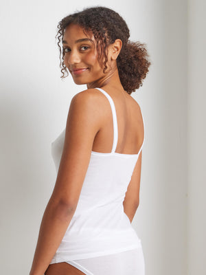 The Kayser Pure Cotton Cami in White is the perfect all-year-round layering piece. Made from 100% superfine cotton, this beautifully soft singlet is comfortable and fits well under your clothing. Featuring a v-neck and mesh trim details, making this the perfect everyday white camisole.